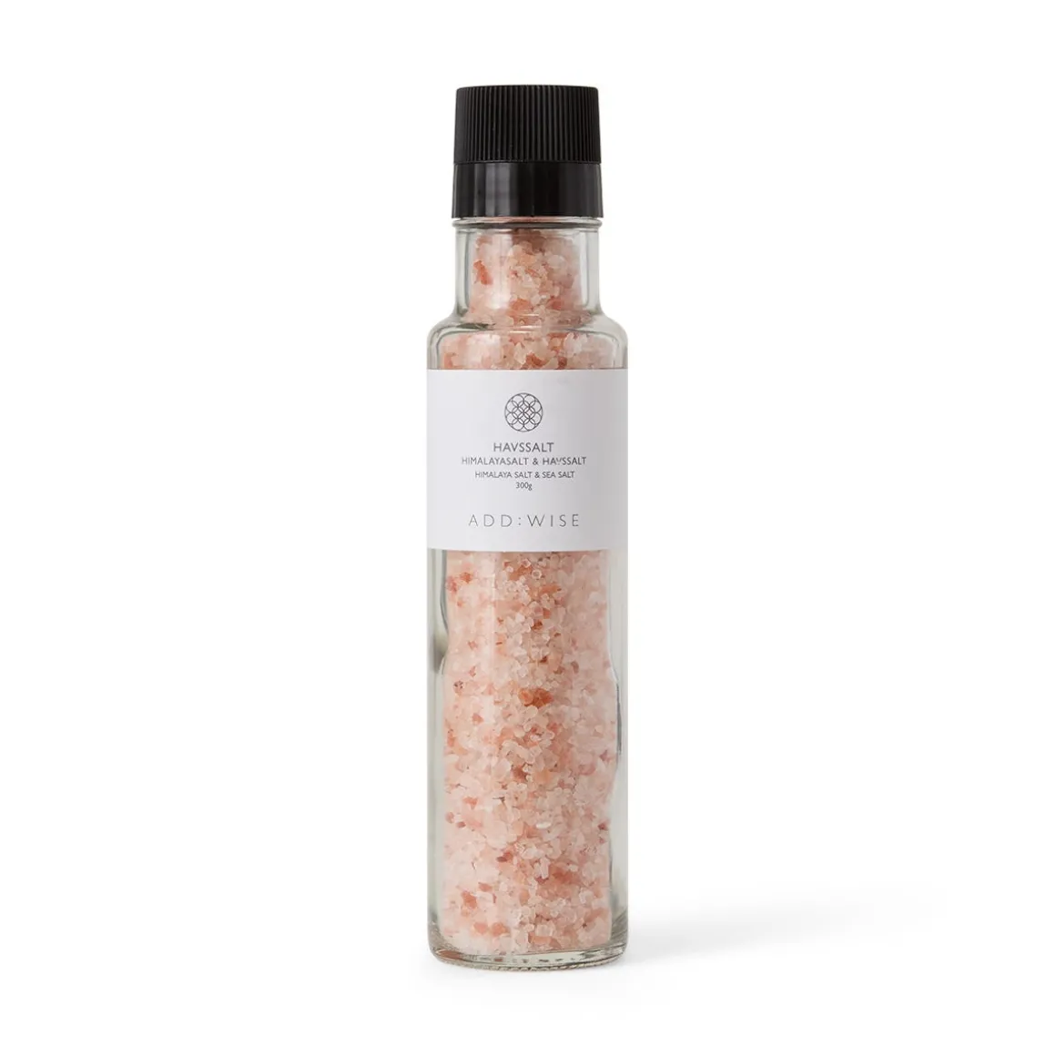 Naturligt havsalt och himalayasalt i en snygg flaska med avtagbar kvarn. Saltet är både ekologiskt och veganskt. Inte nog med att det är gott så är det så fantastiskt fint att ha på köksbänken! Ingredienser:Himalayasalt, havssalt.