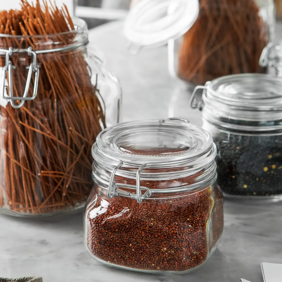 Tätslutande liten glasburk med snäpplock. Perfekt till allt från torrvaror i skafferiet, till bomull, smycken och hårmojänger i badrummet och som förvaring till de där extra knapparna som man inte vill tappa bort.