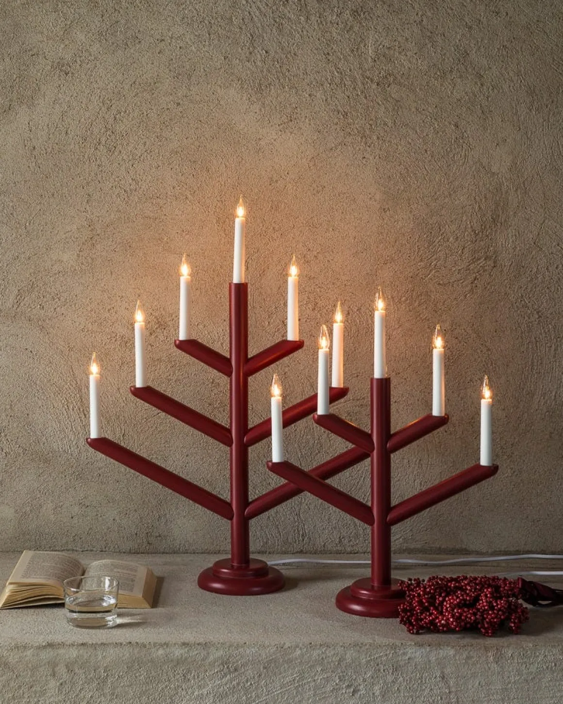 En riktig Granit-favorit som med sin enkelhet skapar en härlig julkänsla hemma! Elljustaken har 7st armar med utbytbara traditionella ljus som sprider ett varmt och juligt sken. Ljusstaken, som även kan kallas adventsljusstake, passar fint i fönster, hyllor eller varför inte som en dekoration på julbordet. Blanda olika typer av ljusstakar för en mer dynamisk look, eller använd en och samma typ för en enkel mer enhetlig känsla. Tänk på att byta ut en förbrukad ljuskälla till en ny med samma markspänning och effekt. Elljusstaken är endast för inomhusbruk. Anslutningskabel 1,7m med strömbrytare.