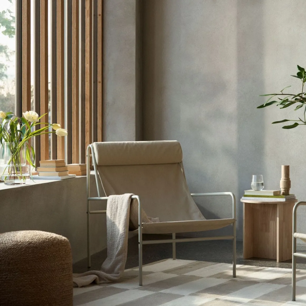 En stilren fåtölj i bomullskanvas med en stomme av pulverlackerad metall. Konstruktionen gör fåtöljen både bekväm och enkel att flytta runt. Perfekt för dig som vill förändra och förnya ditt hem med små medel. Kudden ger extra komfort och kan tas av. Stolen är avsedd för inomhusbruk då den inte är rostbeständig. Om du vill använda den utomhus, se till att den står i ett läge där den skyddas från väder och vind.
