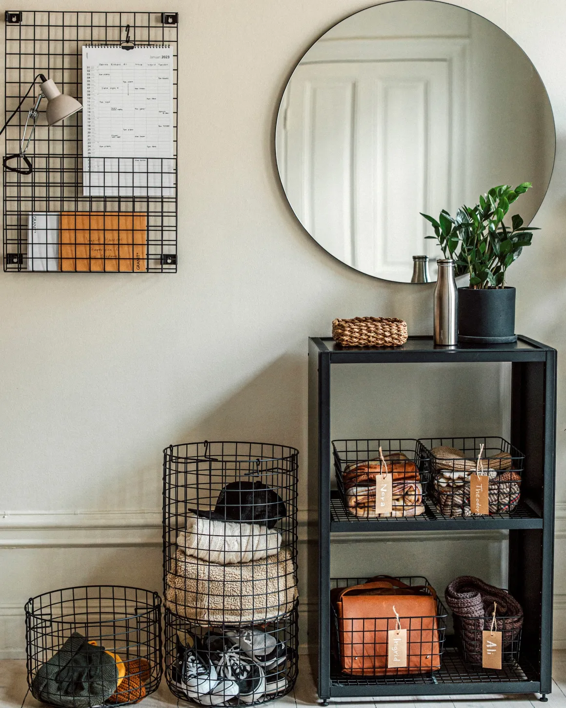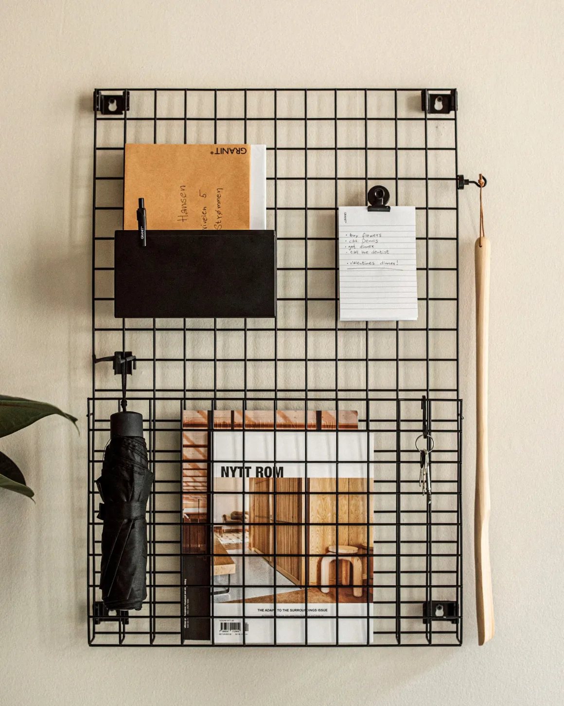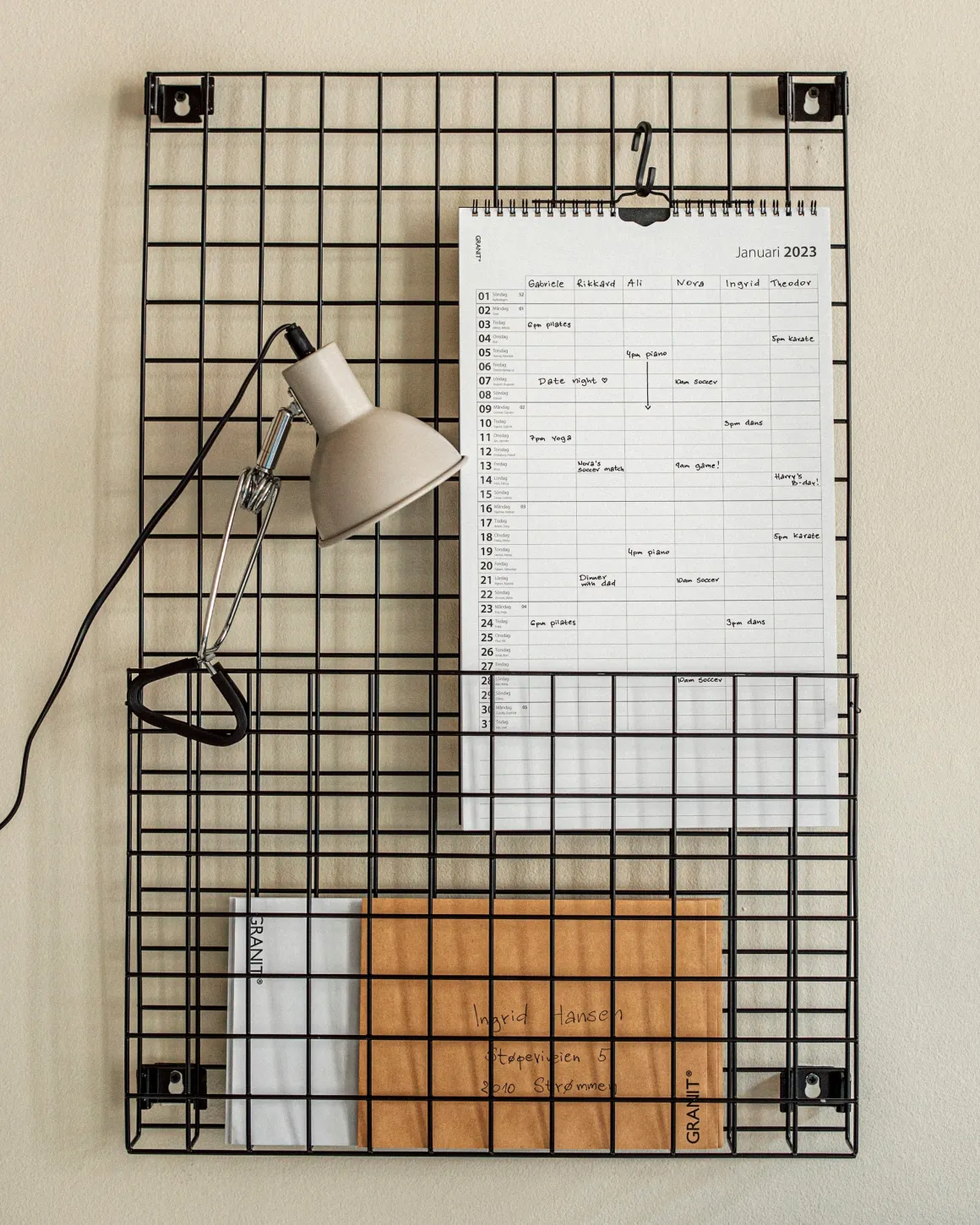 Praktisk förvaringstavla i nät med fack för t.ex. tidningar och post. I kombination med klämmor och S-krokar kan tavlan fungera både som nyckelskåp, anslagstavla och tidningshylla som till redskap och recept i köket. Skruvar för upphängning ingår ej.
