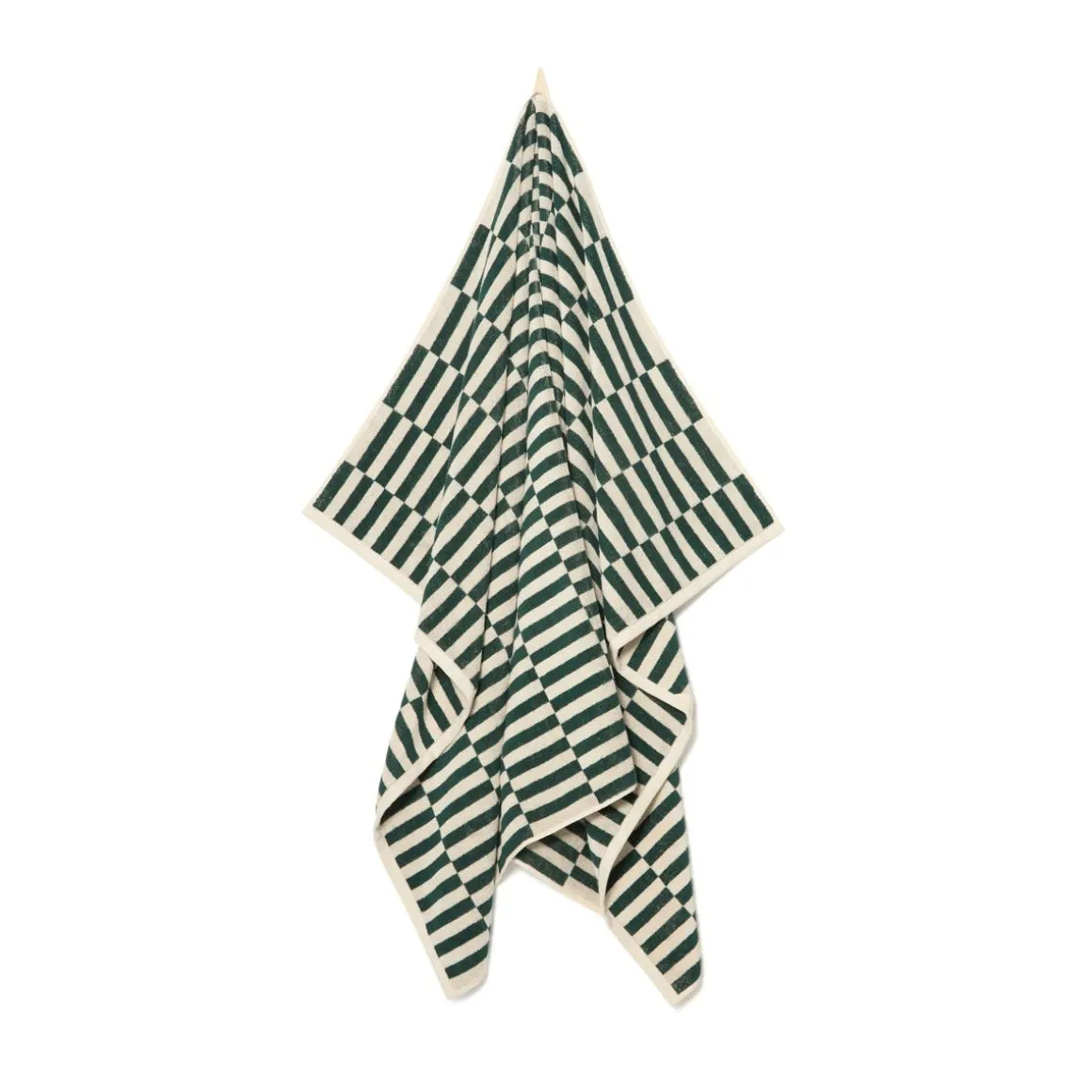 Handduk Avon med måtten 100×150 cm i grönt och vitt är en praktisk och stilfull detalj till ditt badrum. En Oeko-tex certifierad duschhandduk i frotté tillverkad av 100% bomull. Det geometriska mönstret ger en unik och personlig karaktär till inredningen. Tvätta i maskin vid 40°C och torktumla på låg värme. Denna handduk är ett perfekt val för att få in lite färg och mönster i ditt badrum.