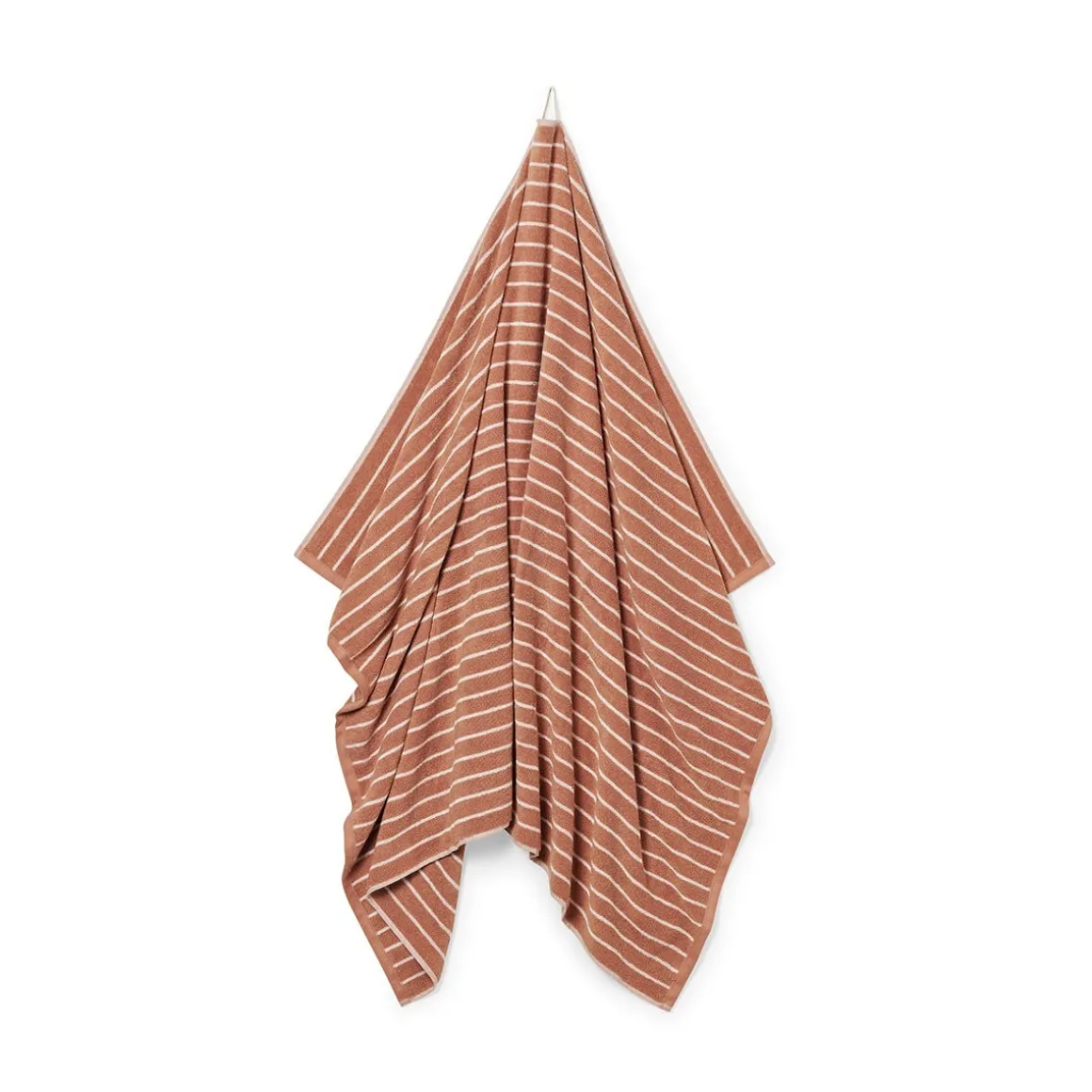 Randig handduk i mjuk bomullsfrotté som är skön mot huden och har god absorptionsförmåga. En fin duschhandduk i en varm, jordnära färg som påminner om terrakotta och på ett enkelt sätt tillför ett stilrent uttryck till ditt badrum.