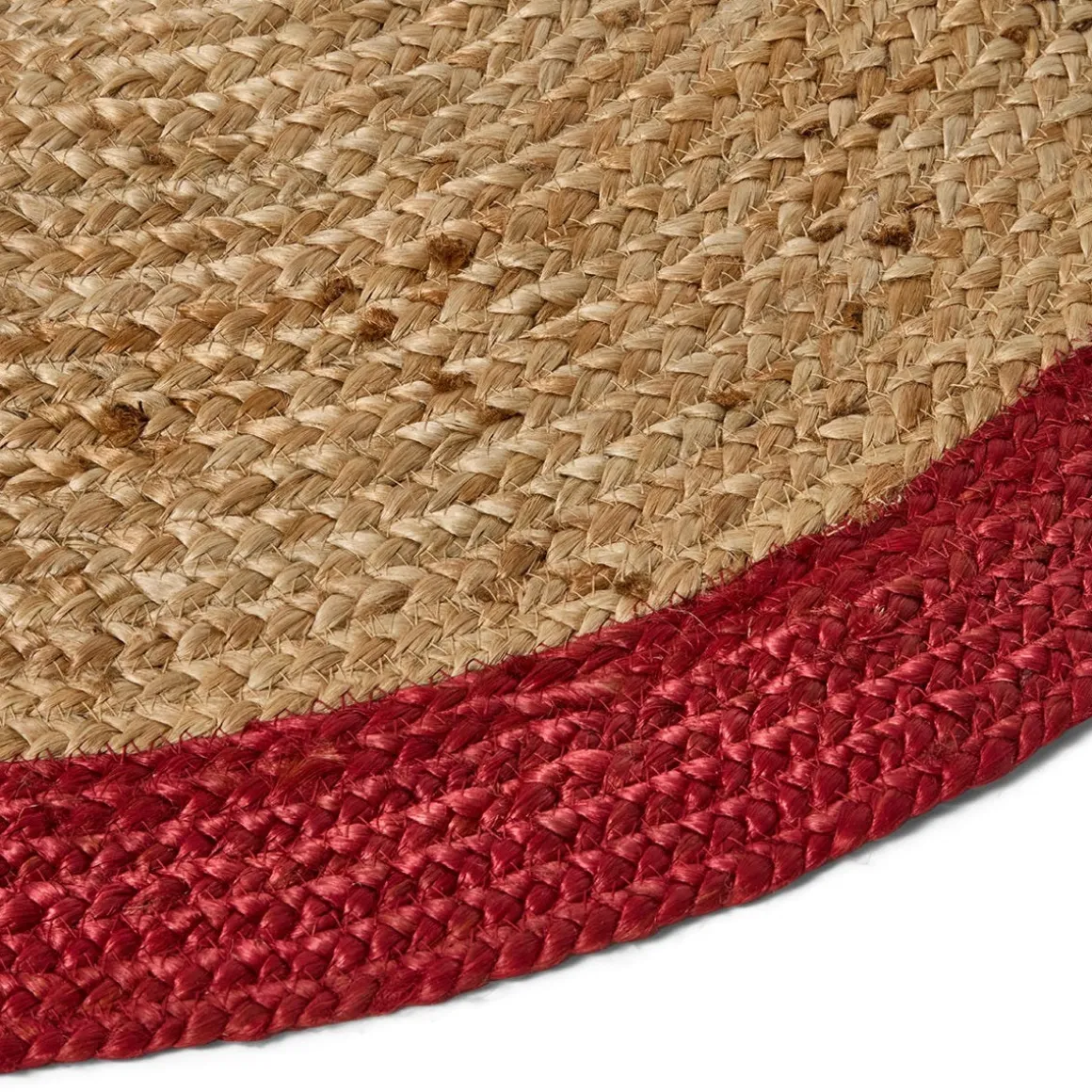 Julgransmatta i 100% jute med en dekorativ röd kant. Jutemattor har en charmig, rustik look som ger en varm och naturlig känsla till rummet. Dessutom är materialet tåligt vilket gör det till ett utmärkt material för en julgransmatta som ska tåla att användas år efter år. Mattan skyddar golvet från repor och barr samtidigt som den bidrar med en mysig julkänsla runt julgranen.