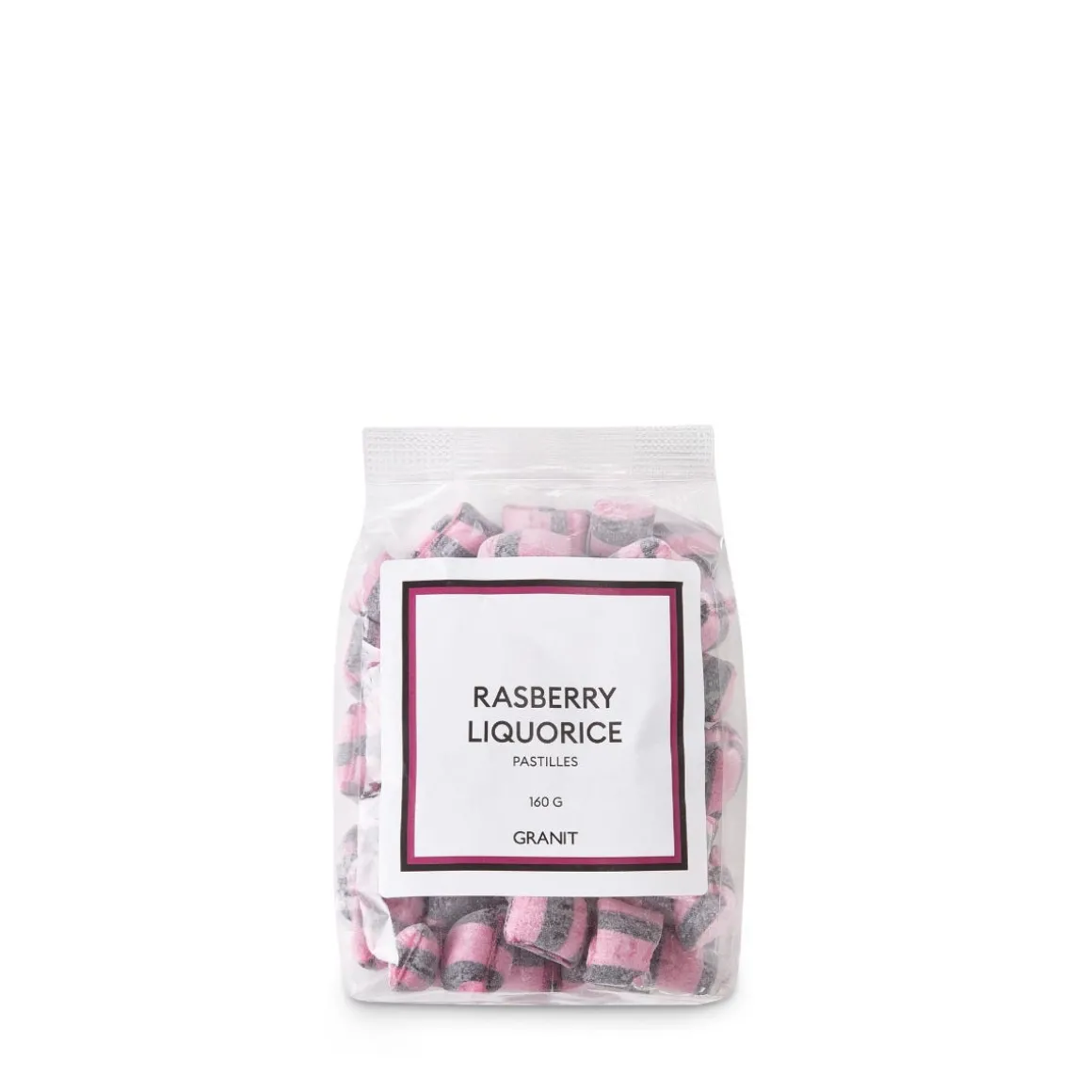 Goda hårda karameller med smak av sött hallon och salt lakrits. En känd och mycket omtyckt klassisk svensk smakkombination. Perfekt som gå-bort-present.