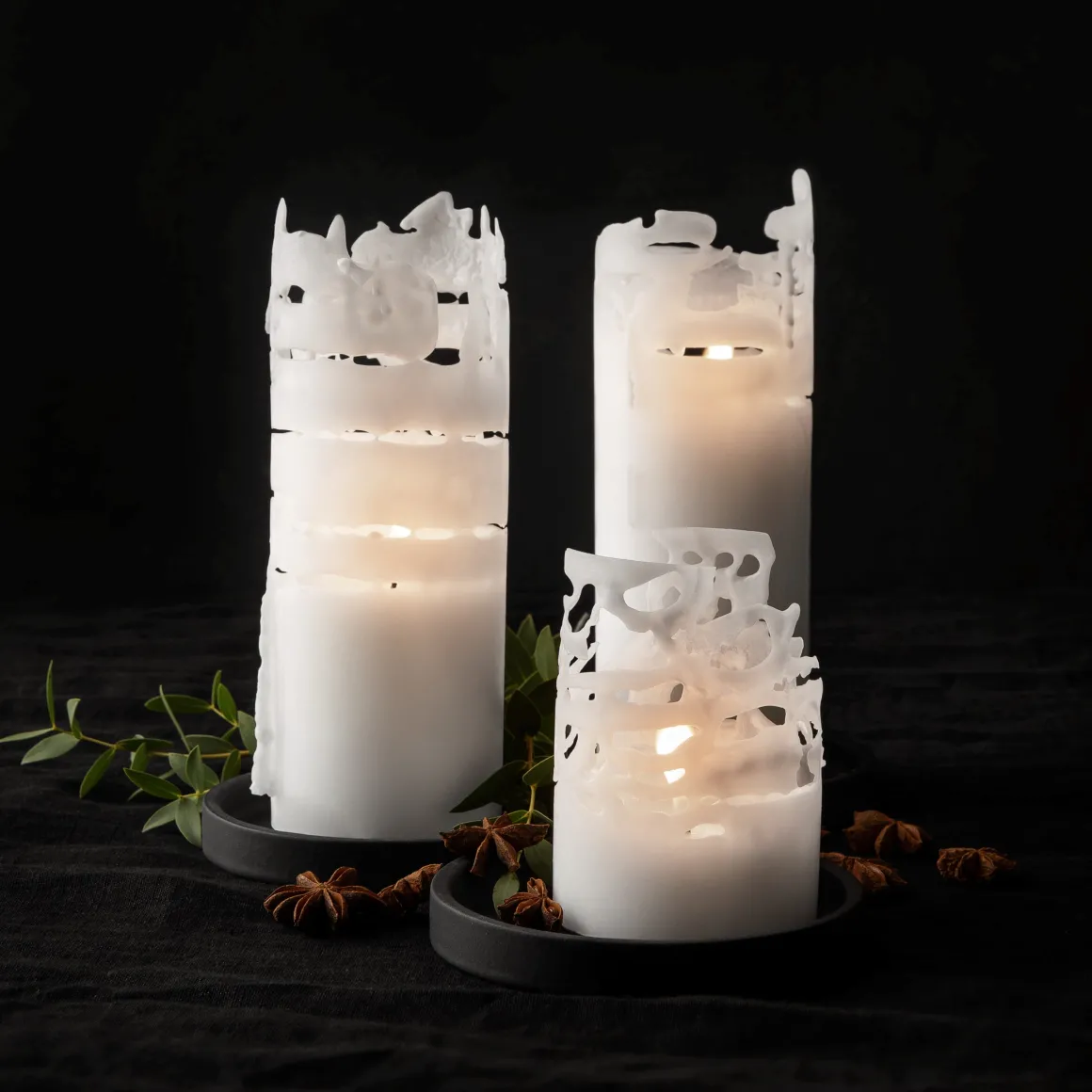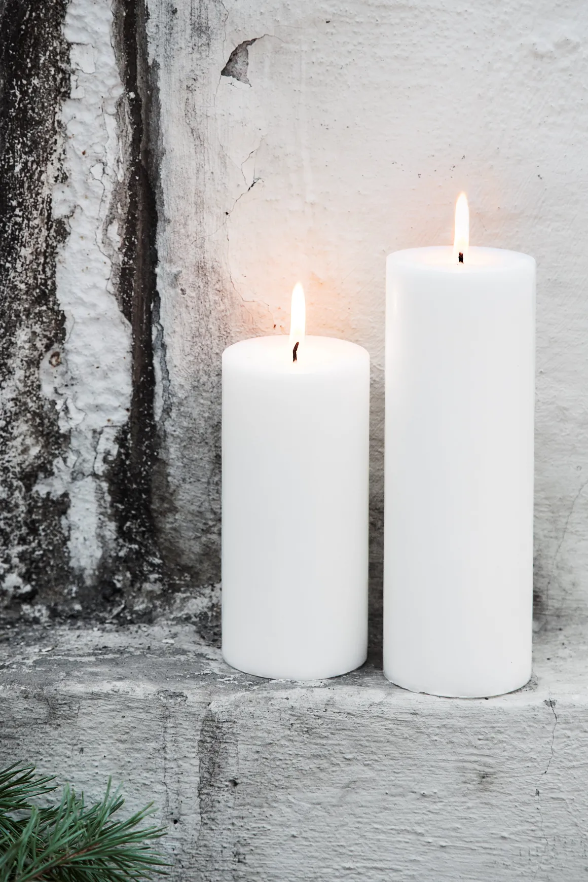 Handgjort blockljus tillverkat av 100% stearin, Svanenmärkta och fria från palmolja. Veken är gjord av bomull och ljuset är snyggt för sig själv eller i grupp.