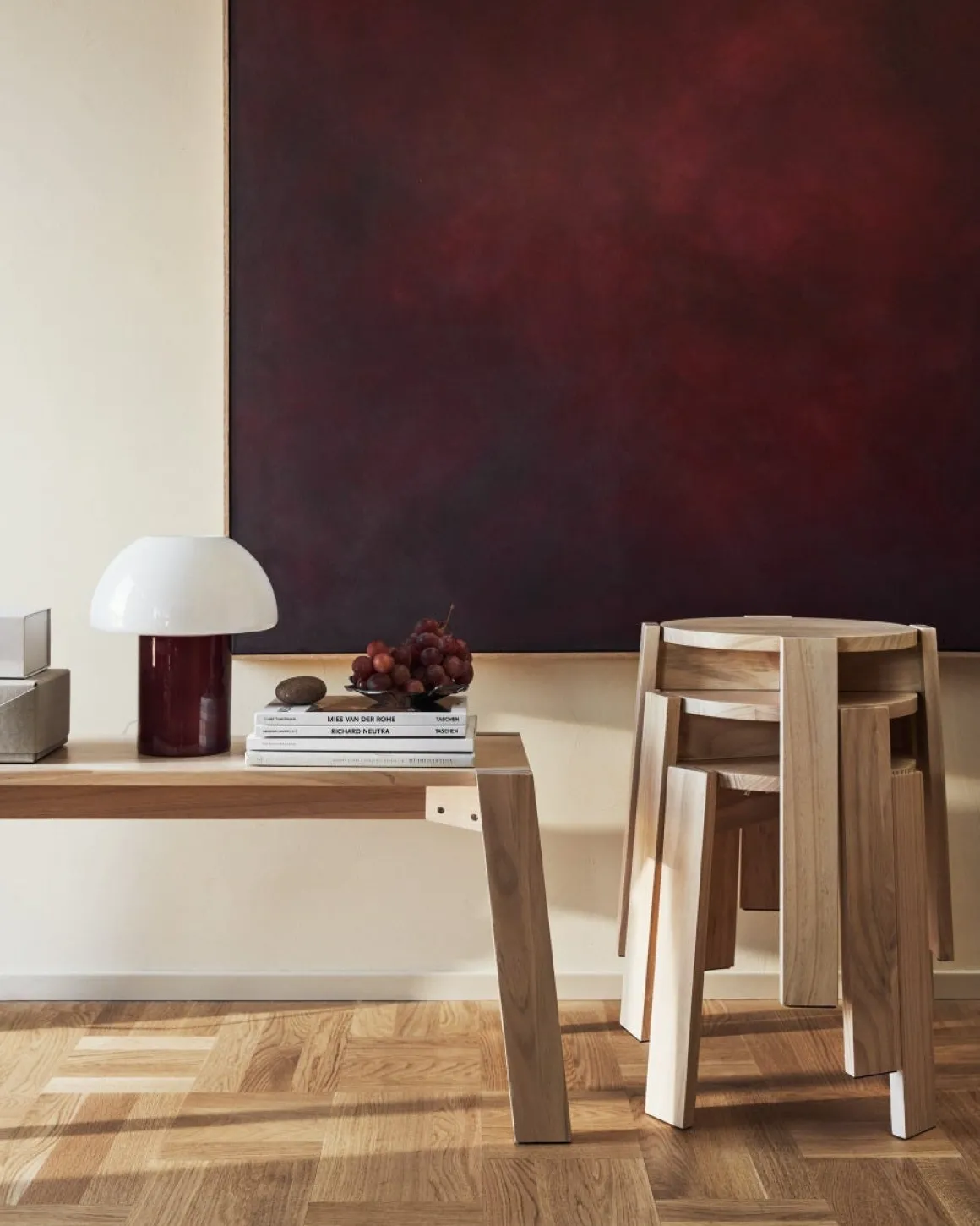 Upptäck Alba: en röd och vit, svampformad bordslampa i opalglas som både är stilren men samtidigt adderar det där lilla extra till din inredning. Bordslampan är avsedd för inomhusbruk och tack vare opalglaset sprider den ett mjukt, varmt ljus i rummet. Finns även i helvitt.