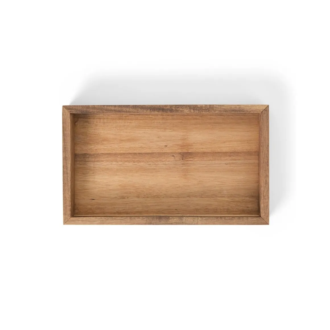 Serveringsbricka i FSC®-certifierad akacia, behandlad med ekologisk ricinolja för att framhäva träets naturliga ådring. En dekorativ bricka som är lika perfekt för servering eller att använda som fat bredvid spisen för olja och kryddor.