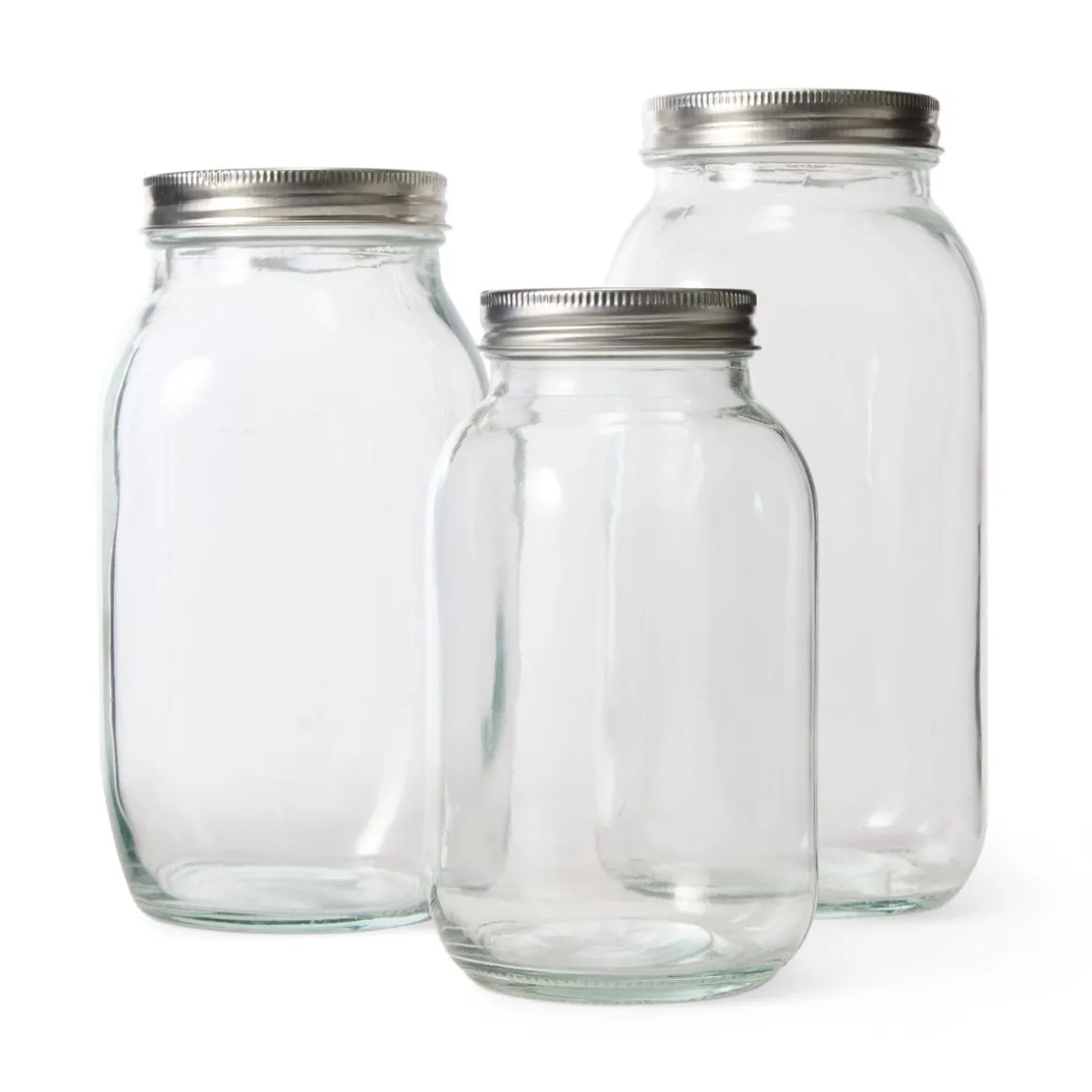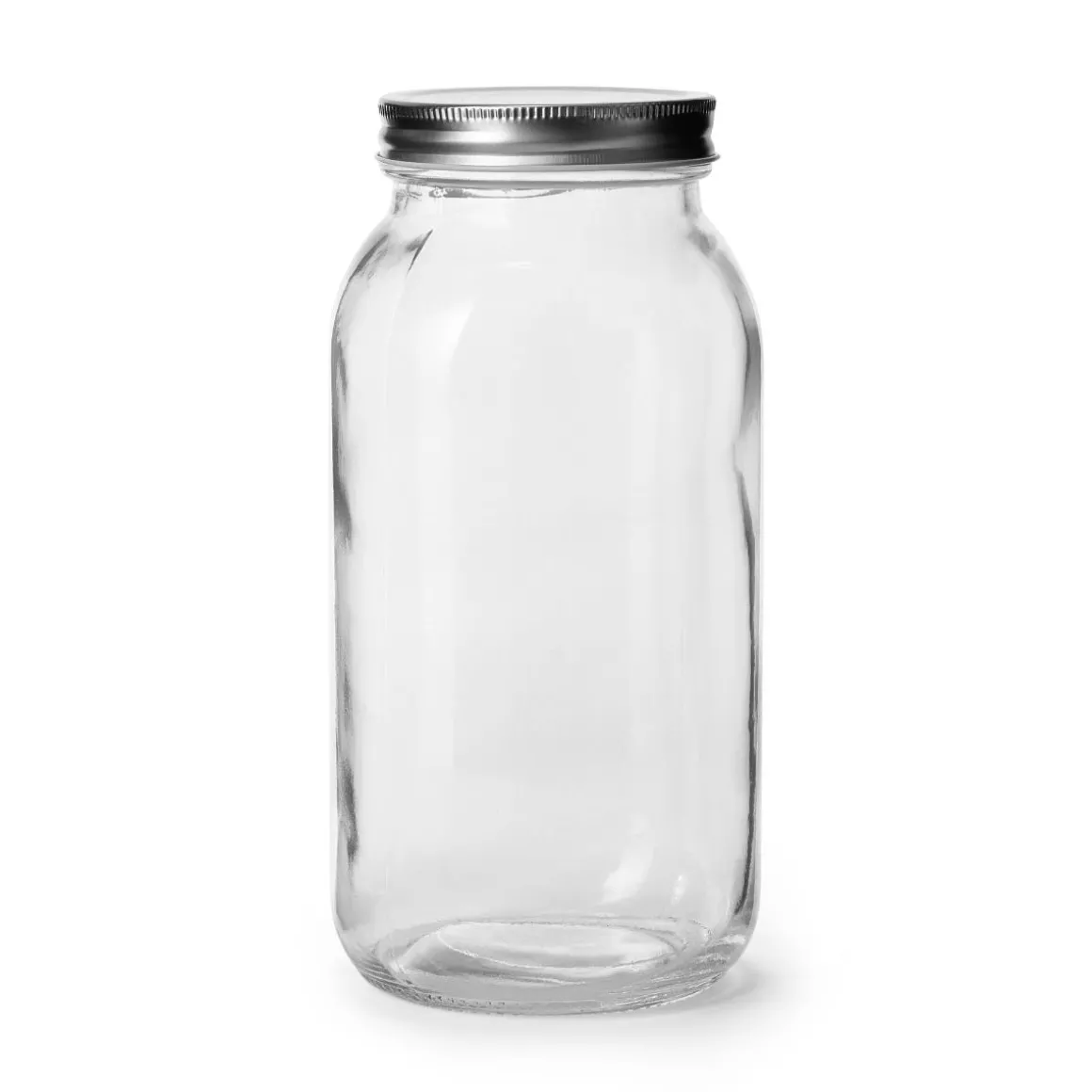 Snygg glasburk med ett skruvlock i metall. Passar för förvaring av torrvaror i skafferiet. Locket är gjort av tenn och har ingen silikonring, vilket gör att den inte bör användas till vätska. En fin glasburk att organisera skafferiet med. Glasburken kan diskas i diskmaskin.