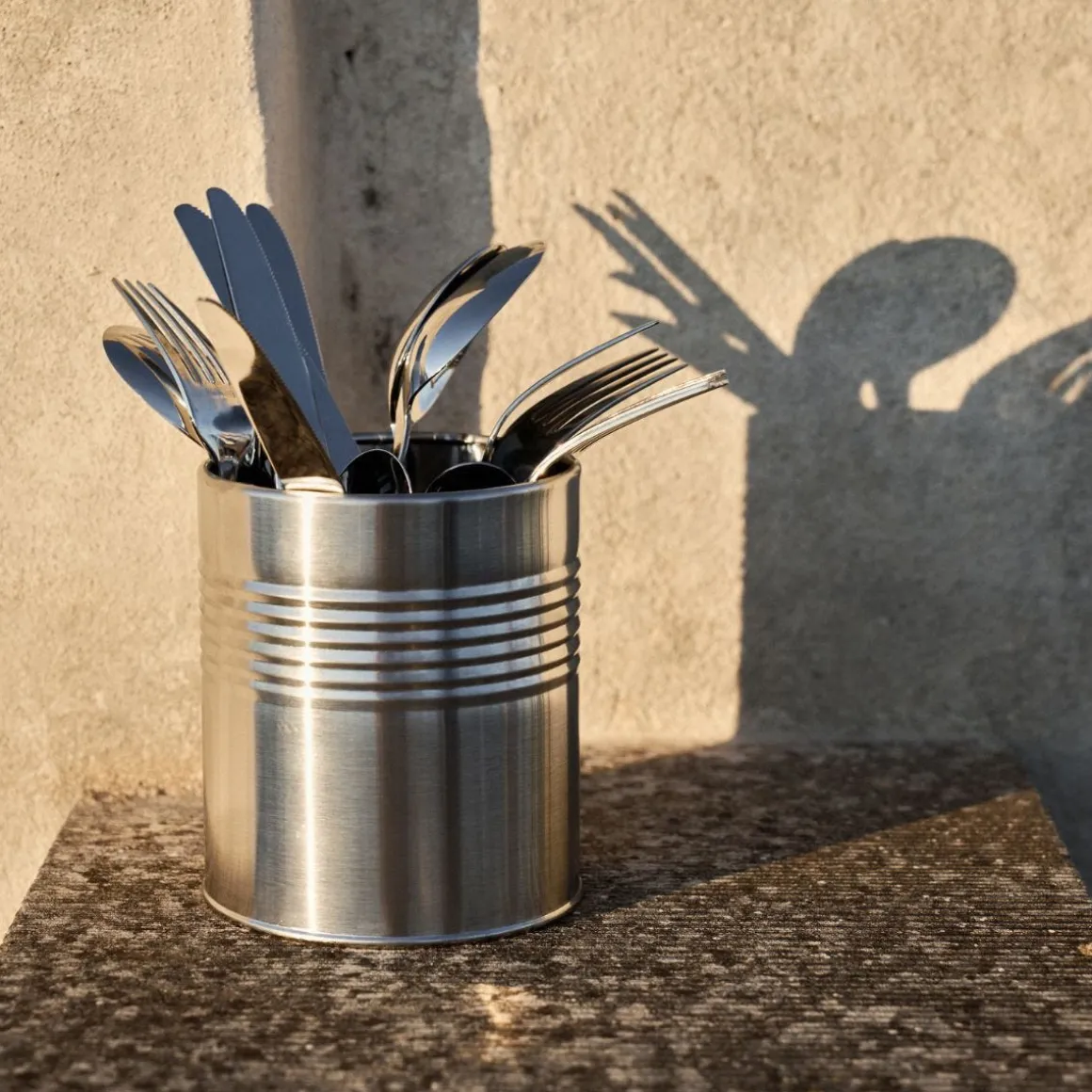 En stilren och mångsidig burk i rostfritt stål som passar lika bra i köket som på skrivbordet. Använd den för att förvara bestick, servetter eller varför inte som en snygg pennhållare? Det slitstarka materialet tål daglig användning, och med rätt skötsel – handdisk och noggrann torkning – behåller den sin fina yta längre. En praktisk detalj som kombinerar funktion och design i hemmet.