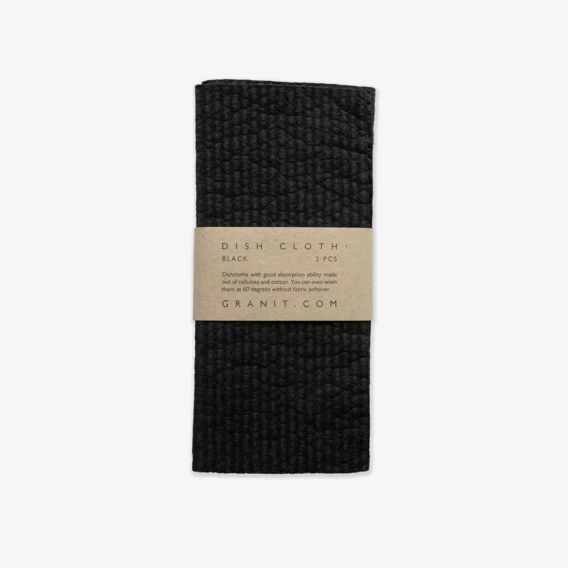 Ett 2-pack med svarta disktrasor. Disktrasorna är biologiskt nedbrytbara och tillverkade av 70% cellulosa 30% bomull.