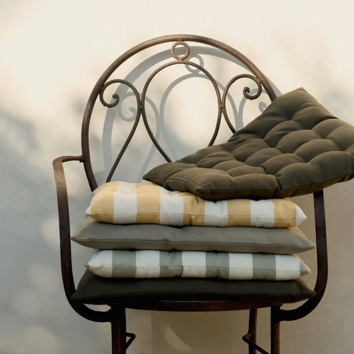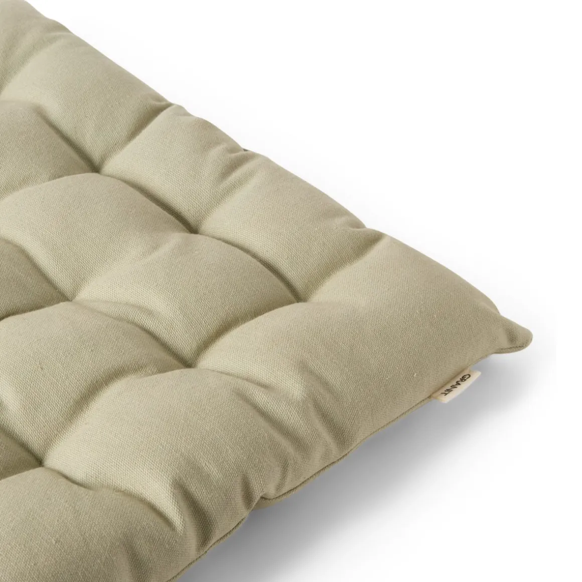 Ljusgrön, kvadratisk stolsdyna i bomull med stoppning av polyester. En dyna som passar lika bra ute som inne men är perfekt som trädgårdsdyna tack vare dess vattenavvisande impregnering, BIONIC-FINISH® ECO. En innovativ och naturlig metod som är mer skonsam mot miljön än traditionella impregneringar. Behandlingen gör ytan lätt vattenavvisande och enkel att torka av samtidigt som textilens naturliga känsla bevaras. Dynan är vattenavvisande men inte vattentät och bör därför tas in eller förvaras under tak vid risk för regn.