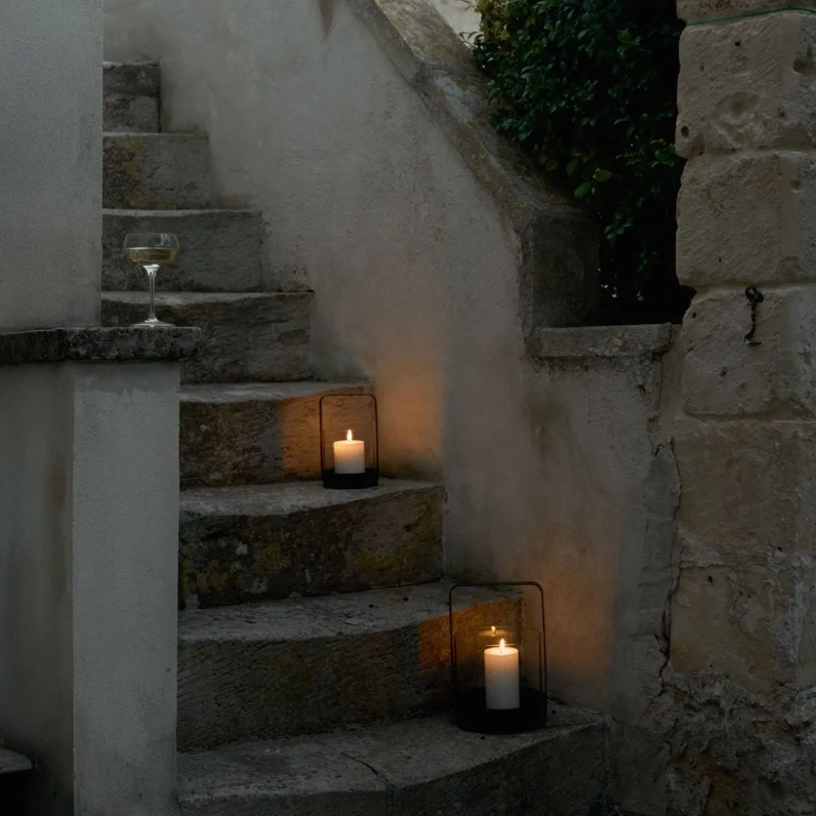 En ljuslykta i metall och glas för användning utomhus. Med denna kan du skapa en mysig och inbjudande atmosfär vid husets entré eller på altanen och balkongen. Påverkas av väder och vind, undvik att förvara ute i regn om den ska behålla sitt ursprungliga skick.