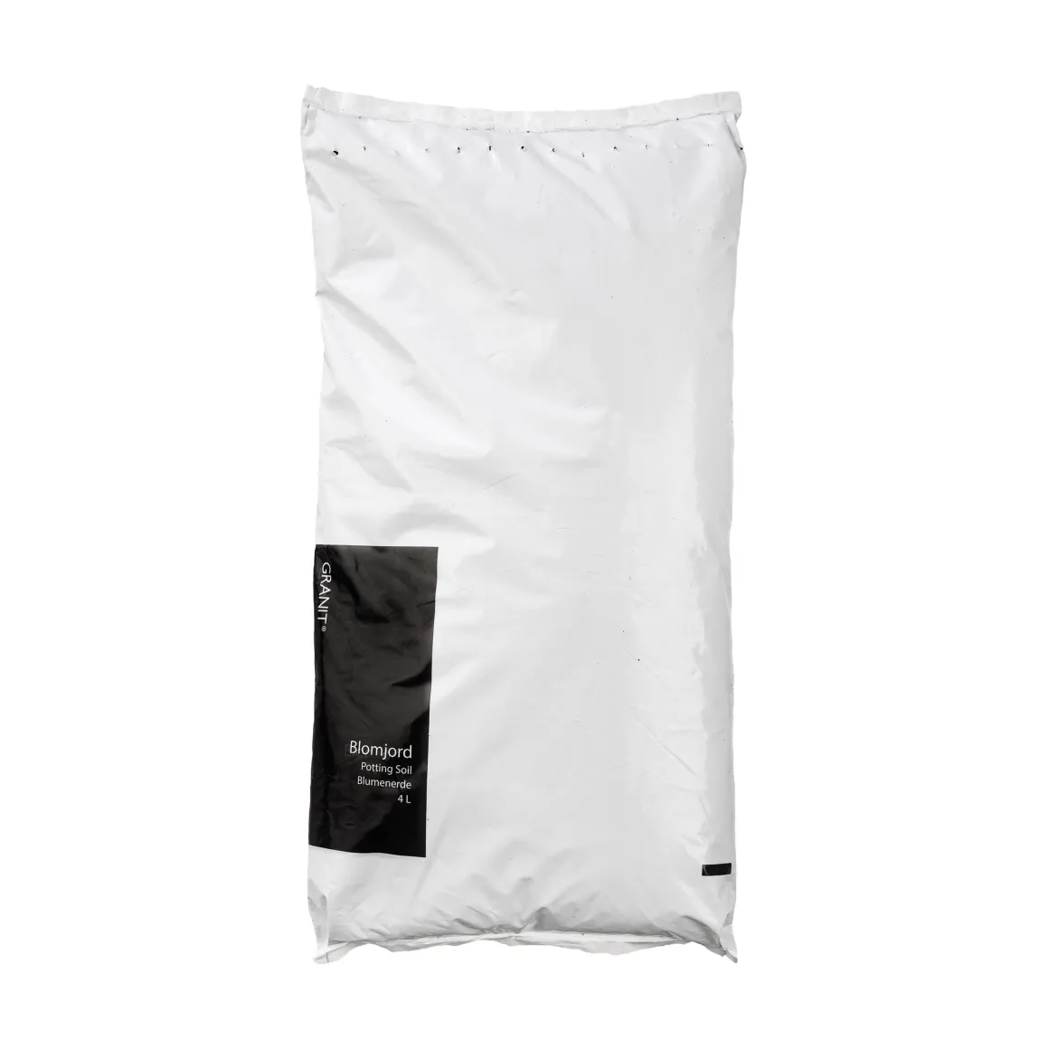 Låt växterna få fräscht runt rötter med färsk, näringsfylld jord från Granit. Påsen innehåller 4 liter blomjord.