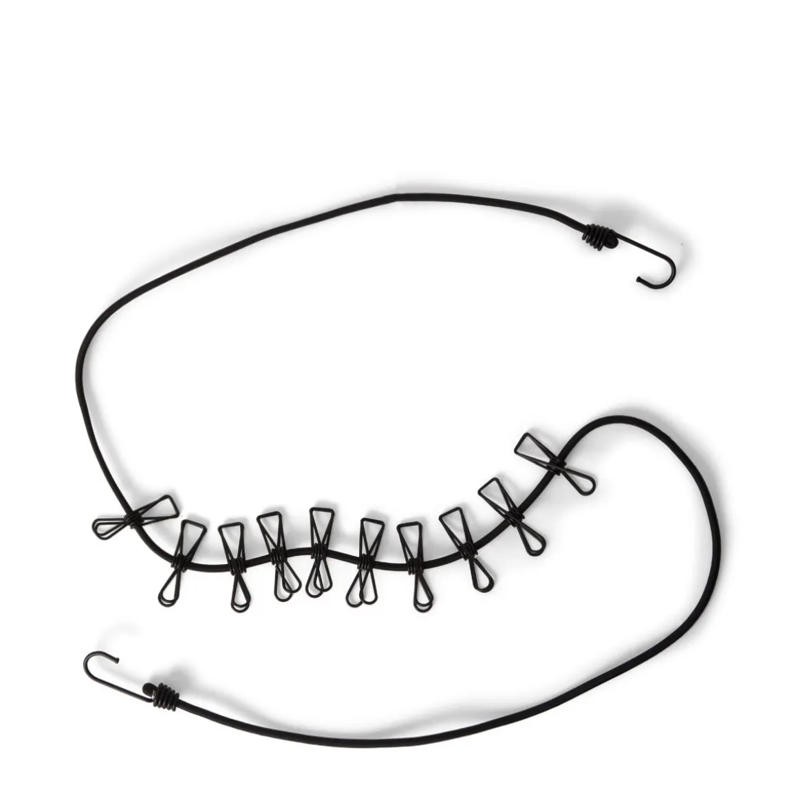 Häng upp dina favoritsaker på ett smidigt och enkelt sätt med vår Svarta Elastiska Vajer. Denna vajer levereras komplett med 10 matchande svarta klämmor och svarta krokar i varje ände, vilket gör den till ett praktiskt och stilrent sätt att organisera och dekorera ditt hem. Häng upp foton, teckningar, kom-ihåg-listor, recept eller annat som du vila upp eller ha framme.