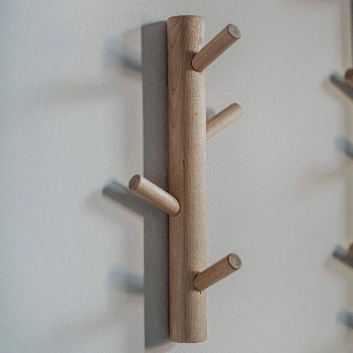 Tillverkad i trä med dolda skruvhål baktill för en smidig upphängning. Enkel att montera upp på väggen och har icke synliga skruvhål på baksidan. Knopplisten är gjord i av björk, ett starkt och hållbart material som håller över tid. Kan enkelt byggas på med flera på höjden, samma avstånd mellan knopparna gäller på alla vertikala knopplister. Finns i olika storlekar.