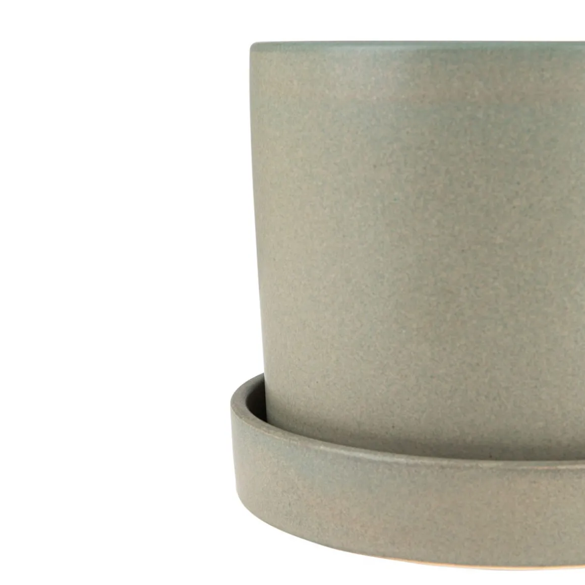 Snygg grön kruka, gjord av stengods med tillhörande fat. Krukan har ett dräneringshål med plastplugg i botten och är både frost- och vattentålig och kommer väl till användning både ute och inne. Snygg att ha flera ihop eller stående för sig själv.