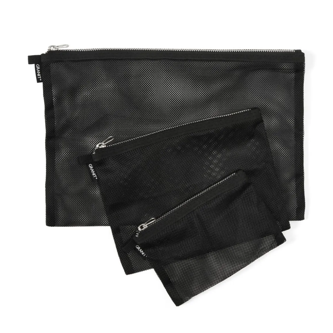 Meshpåsarna kommer i tre olika storlekar som kan förvaras i varandra när de inte används.