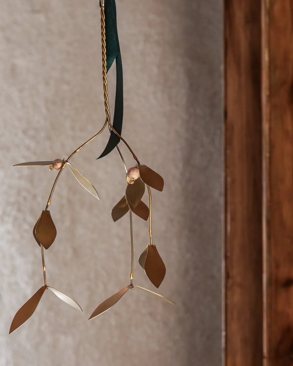 Mistel Mässing är en snygg hängande dekoration som passar fint både i julgranen, på en kroklist eller hängandes från dörrkarmen. Den kombinerar traditionella element med modern estetik och är en dekoration du kan använda år efter år.