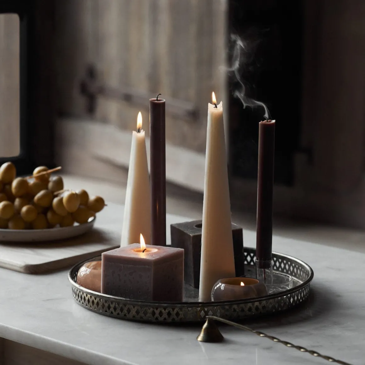 Stearinljus i en dekorativ pyramid-form. Ljuset finns i två storlekar och passar fint på en stor rund ljusbricka. Passar fint tillsammans med ljus i flera former och färger.