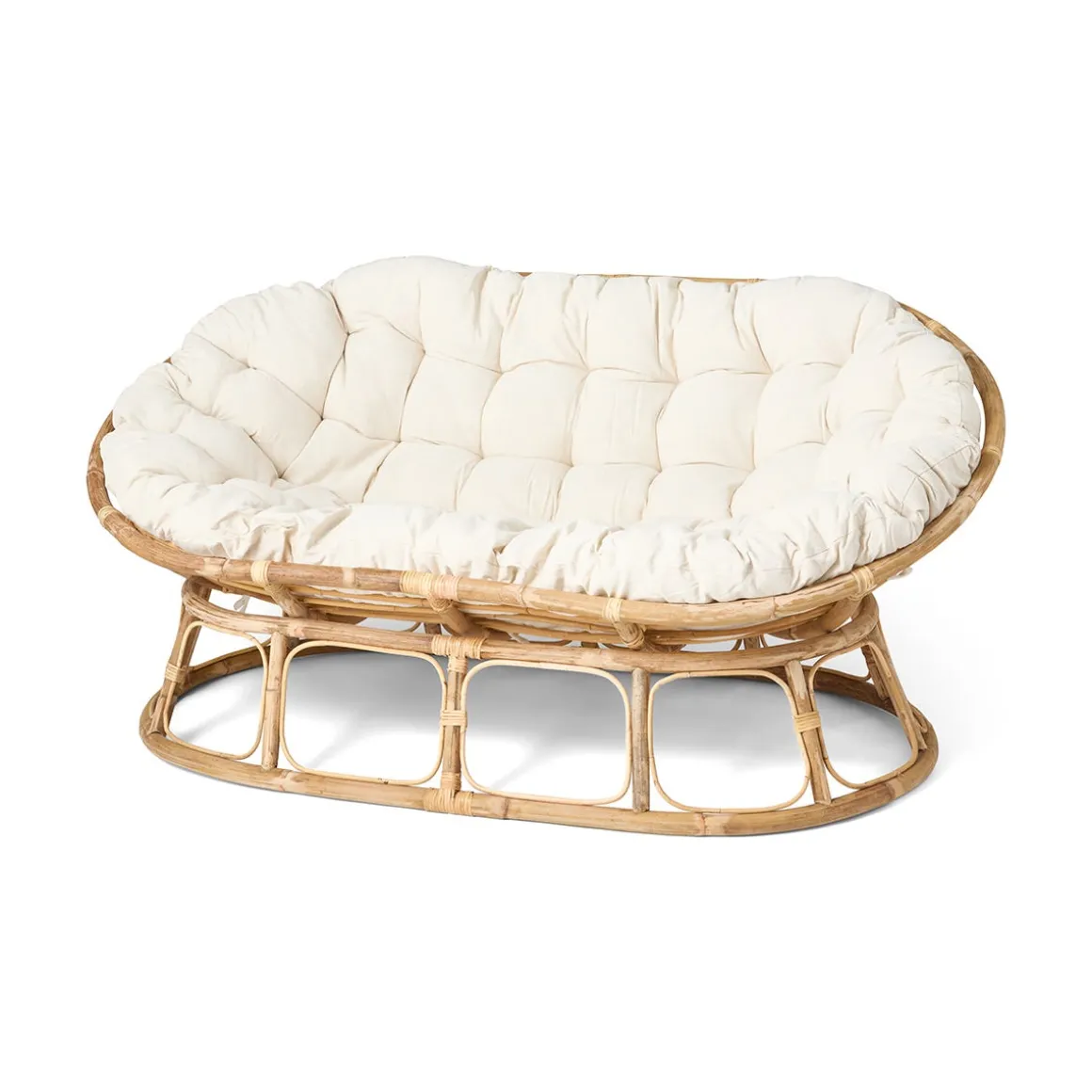 Vår ovala rottingsoffa med en härlig mjuk dyna som täcker hela sittdelen blir definitivt favoritplatsen att hänga på. Materialen skapar en avslappnad känsla och soffan passar fint in i många olika inredningsstilar. Matchar snyggt ihop med fåtölj rund rotting i samma serie.