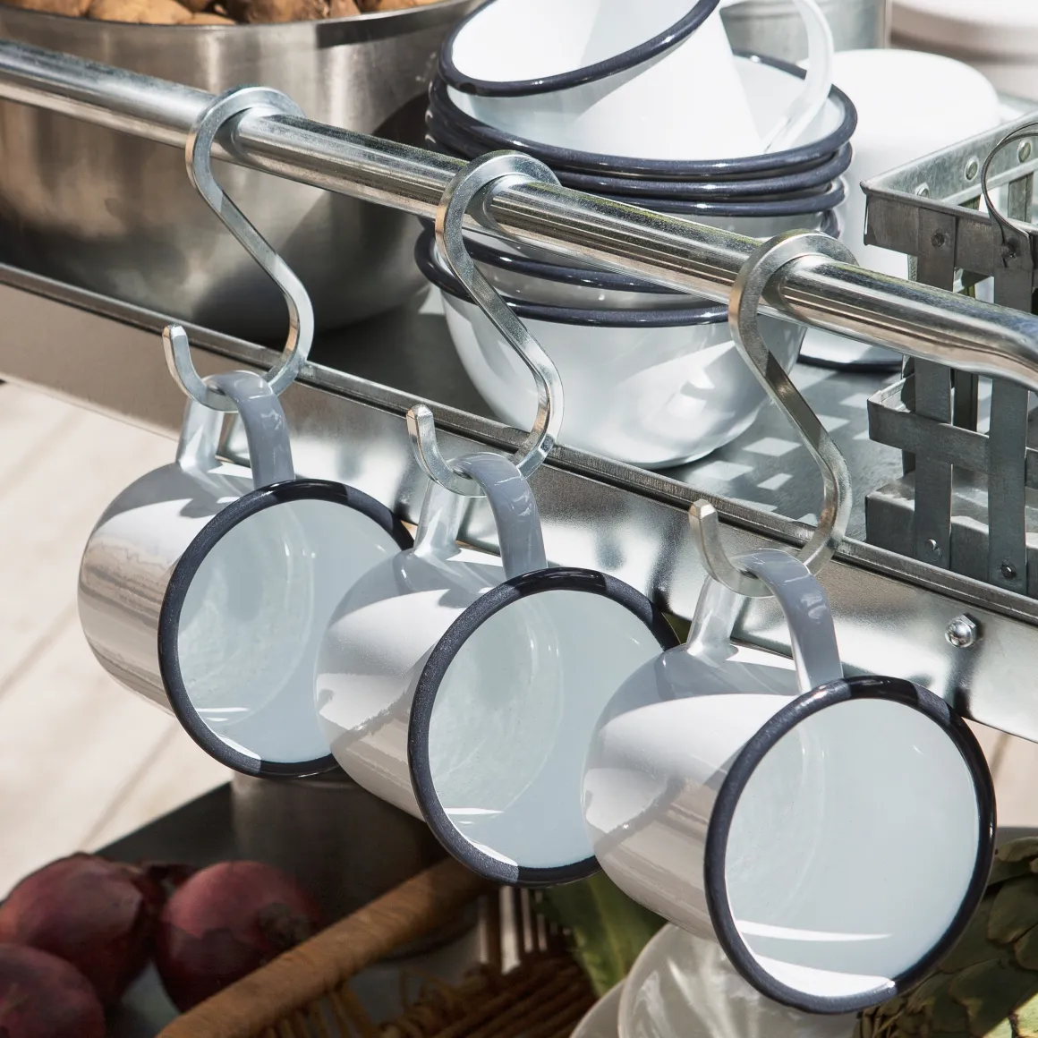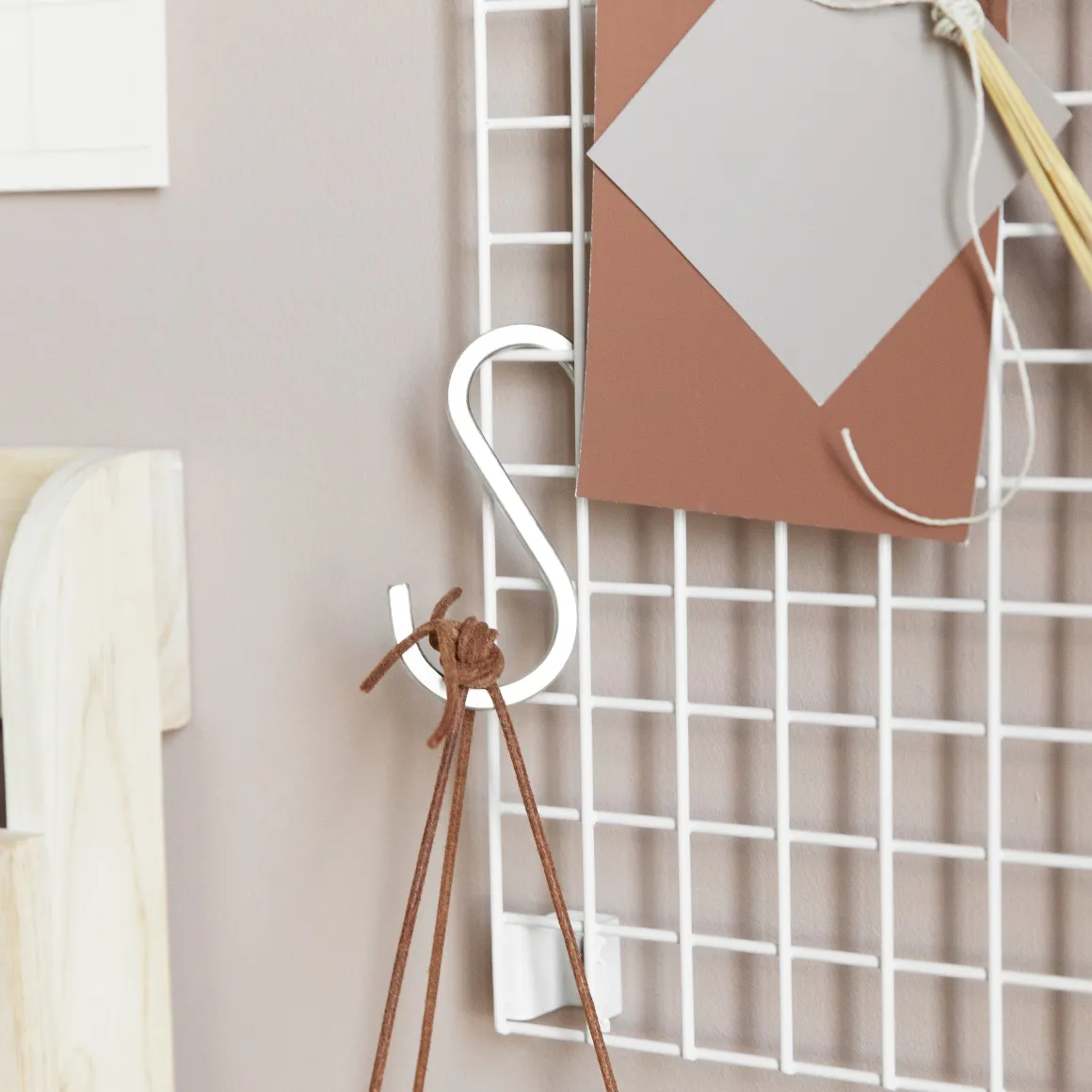 Rejäl och flexibel S-krok i järn med platta bankade sidor. Krokarna har olika innerdiameter på 2,5 cm respektive 3,5 cm. Praktiskt alternativ eller komplement till galgar, väggkrokar mm. Finns även i en större modell.