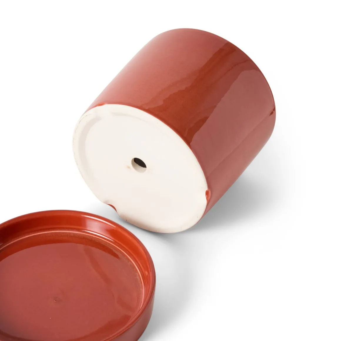 Snygg kruka i stengods med tillhörande fat. Krukan har ett dräneringshål och kommer väl till användning både ute och inne. Snygg att ha flera ihop eller stående för sig själv.