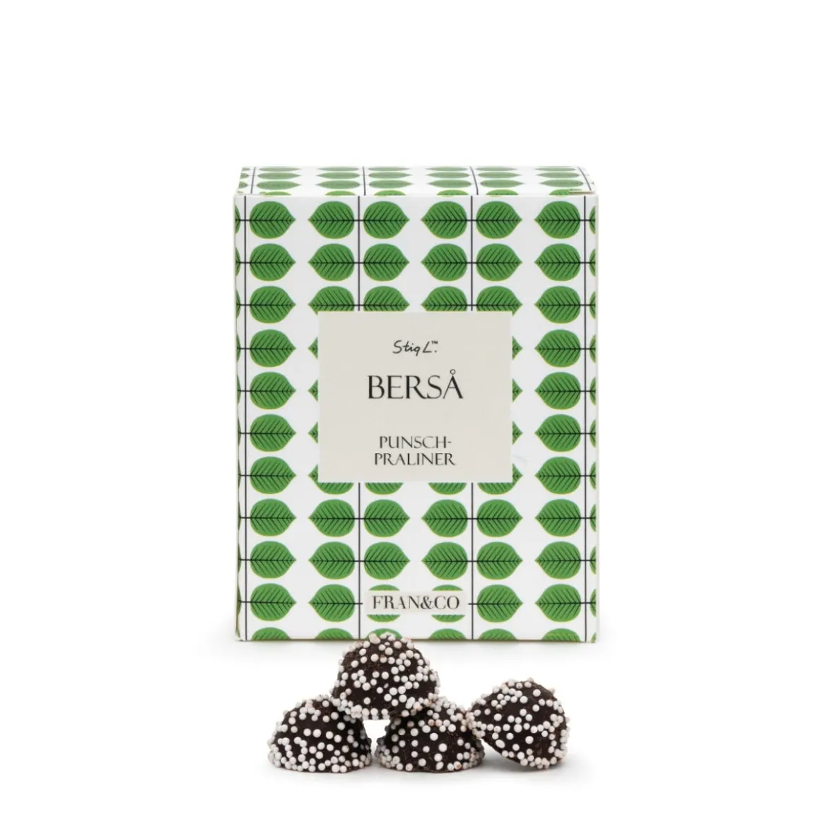 En smakfull hyllning till svensk design och tradition! Dessa klassiska punschpraliner kommer i en dekorativ mönstrad förpackning med print av den ikoniska formgivaren Stig Lindberg. En perfekt gå-bort-present som kombinerar god smak med tidlös estetik.