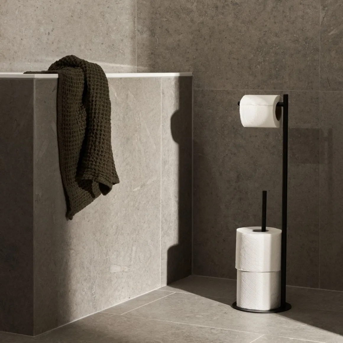 Golvstående toalettpappershållare i svart metall som håller toalettpappret i perfekt höjd. Gjord av 100% järn med en svart beläggning.