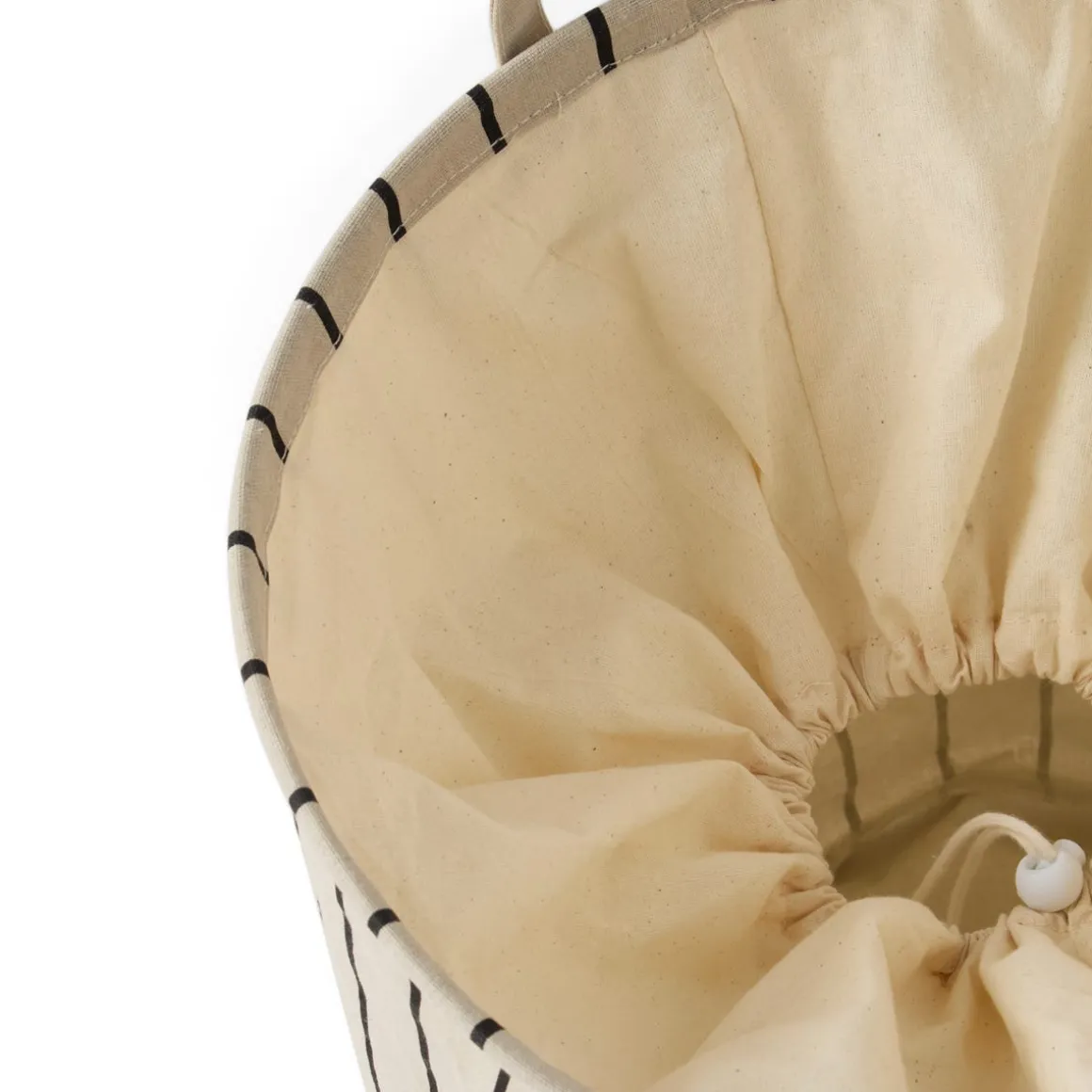 Smidig tvättkorg som tar liten plats när den inte används då den går att vika ihop. Korgen kan förslutas med hjälp av en dragsko så att tvätten inte syns. Korgen har en PE-coating på insidan som gör den enkel att torka av.