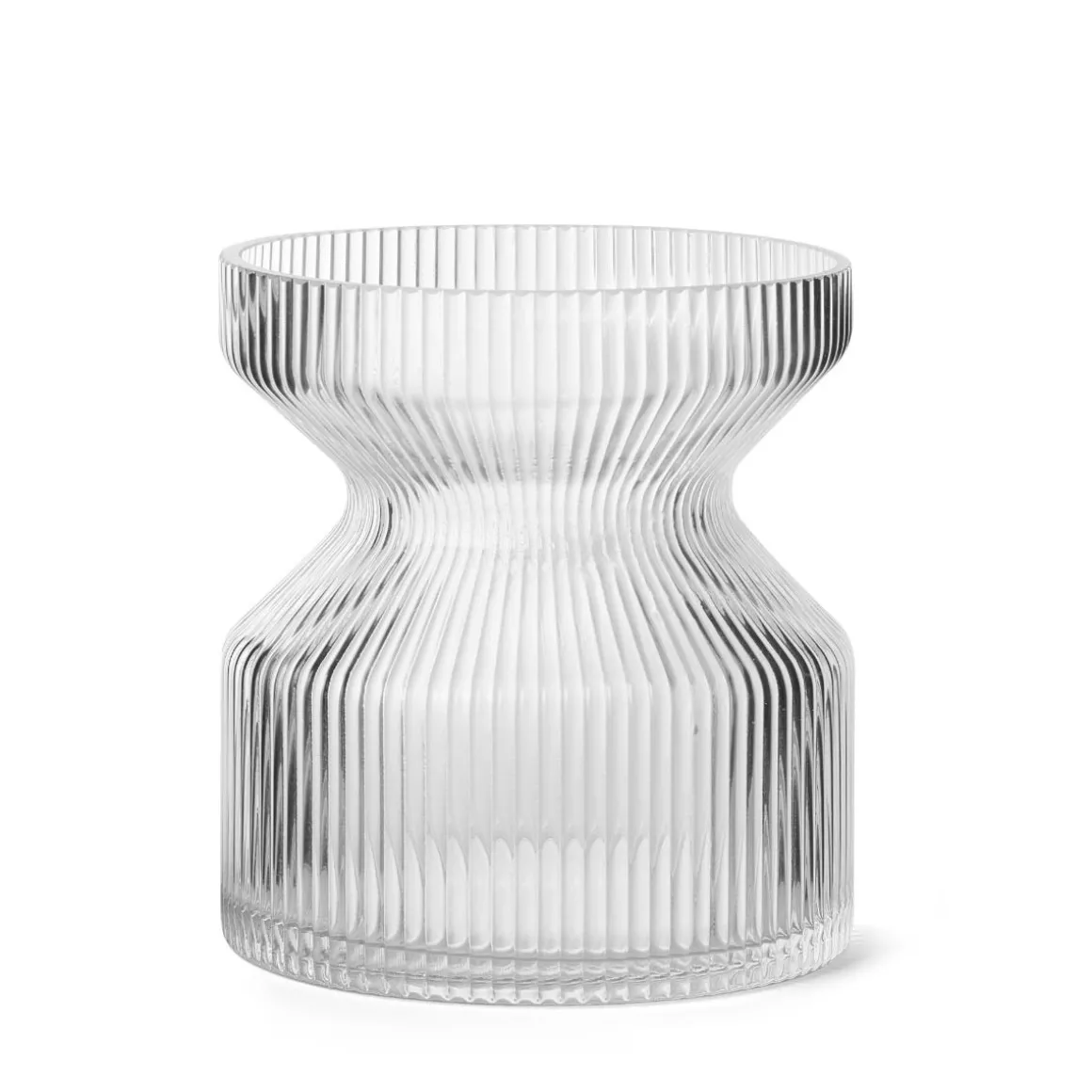 En räfflad amaryllisvas som håller en amaryllislök. Tack vare den fina designen är vasen fin både med och utan amaryllis. Den behöver inte heller endast användas som amaryllisvas, utan fungerar också bra som en vanlig vas för andra typer av blommor.