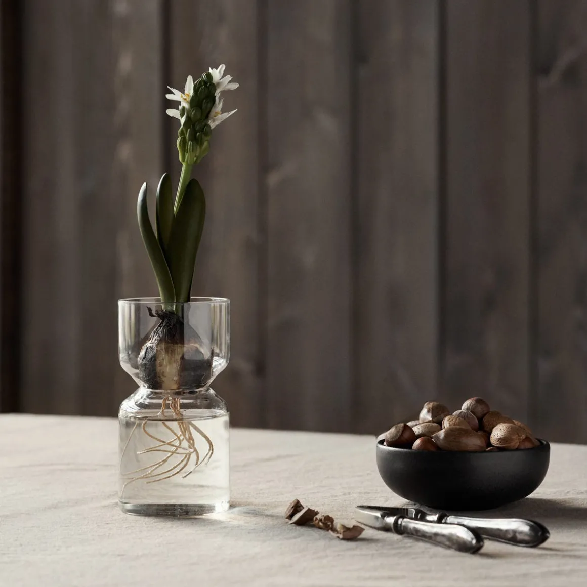 En hyacintvas tillverkad klarglas utformad för hyacinter. Står gärna själv men ännu hellre tillsammans med flera andra vaser. Mixa och matcha flera vaser för en personlig look. Finns även i en mindre storlek.